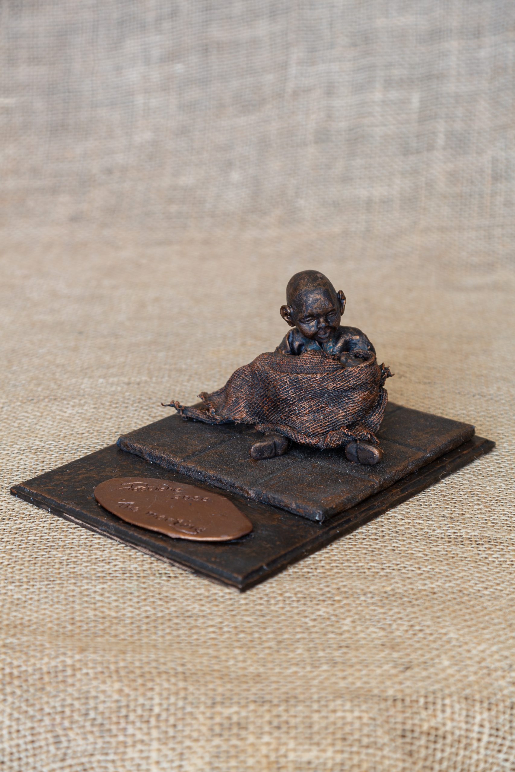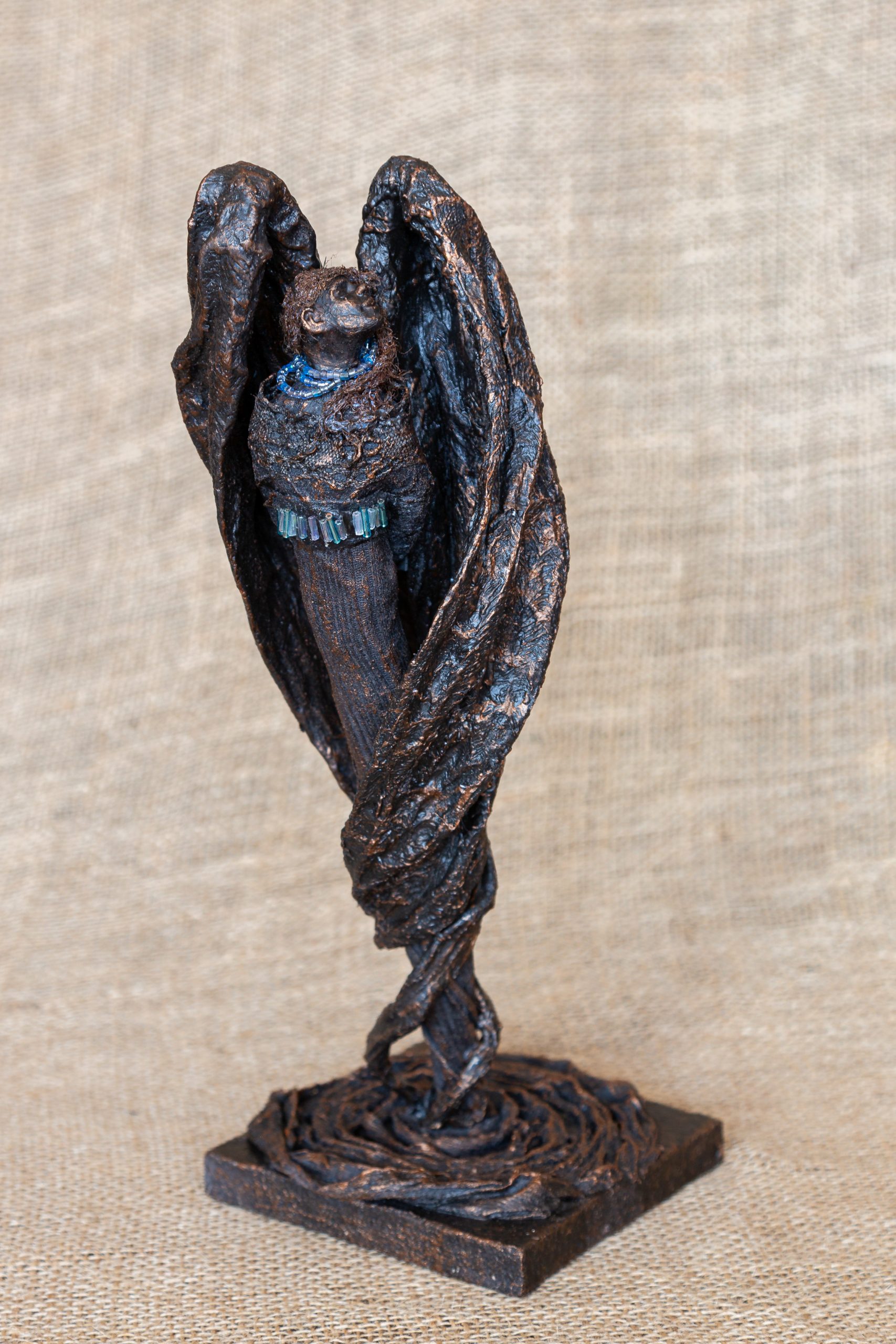 The sculptures are made from Polymer clay, Paverpol, natural fabrics, glass, wood and other recycled materials. There are currently two collections included in the artists body of work. New collections will be added as new themes become apparent. The majority of the sculptures reflect Rina’s unique ‘old copper’ style with its signature single colour element. Now and again she makes a sculpture in other colours. Each sculpture comes with it’s story, as well as a certificate of authenticity. View the sculptures and their stories in our gallery. Each sculpture has its own story, which is attached to bottom of the sculpture and added with the certificate of authenticity on purchase of the sculpture.
