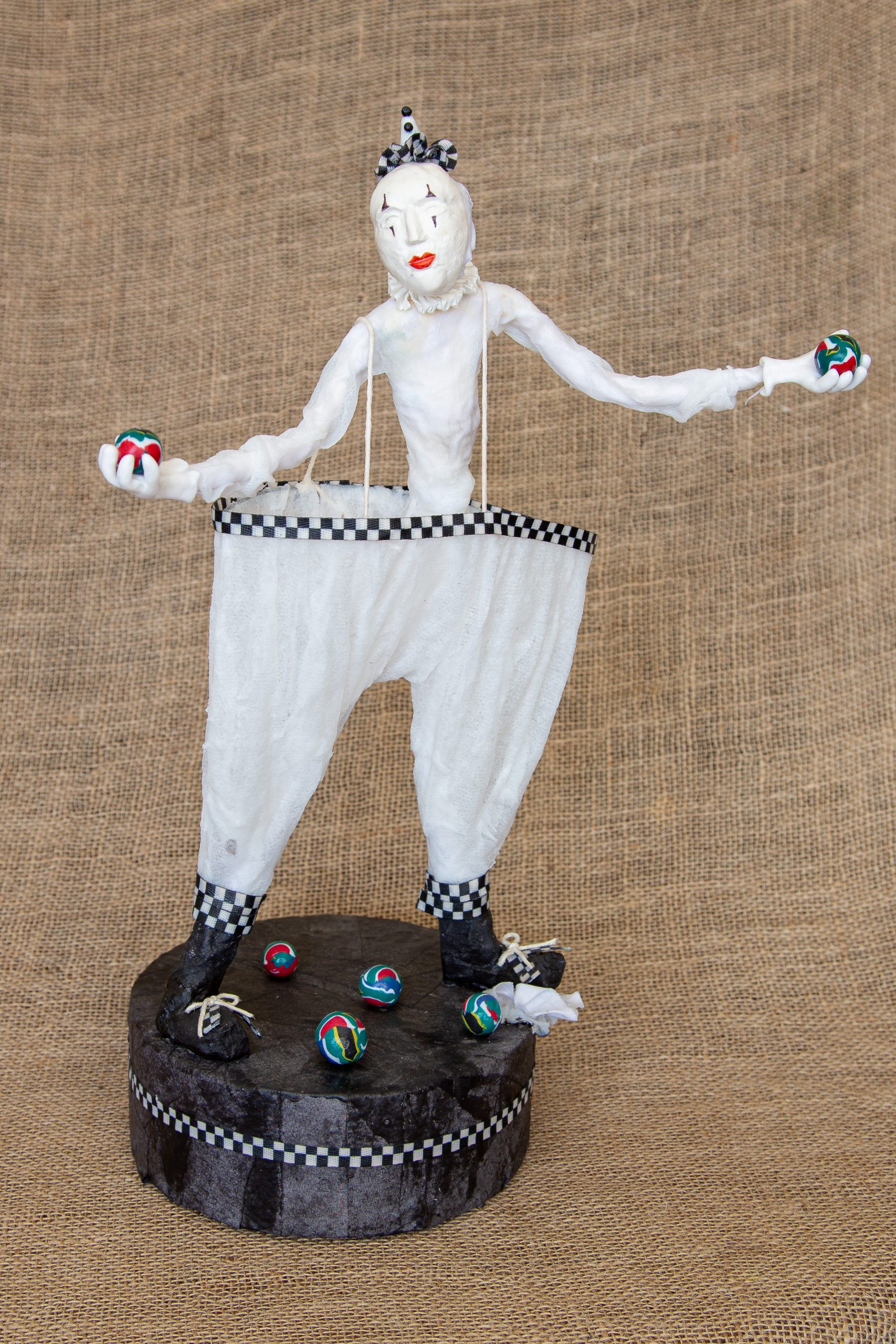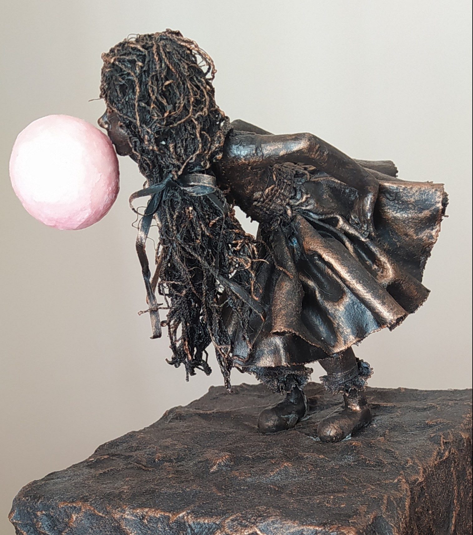 Rina creates pastiched sculptures from polymer clay, recyclables and Paverpol, combining different styles, mediums and ideas, to portray the sculpture’s story or message.